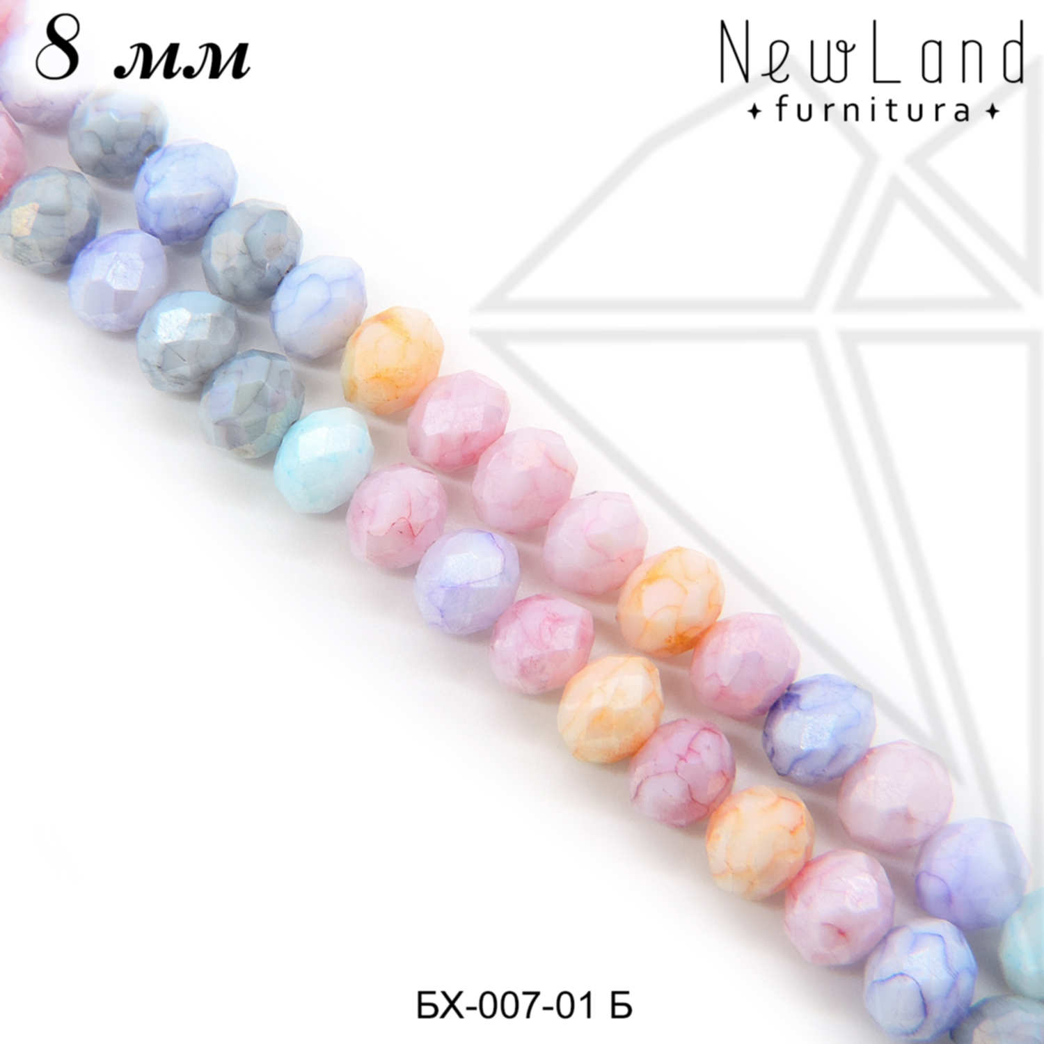 Хрустальные (стеклянные) бусины с огранкой в форме ронделя. Цвет микс (зеленые, оранжевые, фиолетовые, розовые, серые). Все цвета красивых пастельных оттенков с рисунком под «мрамор».