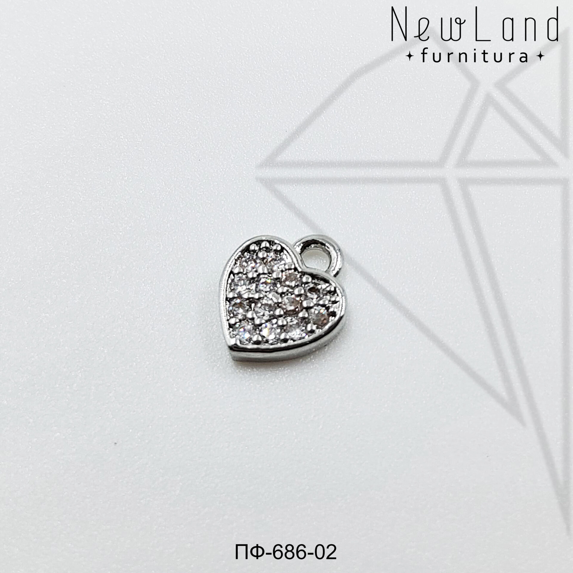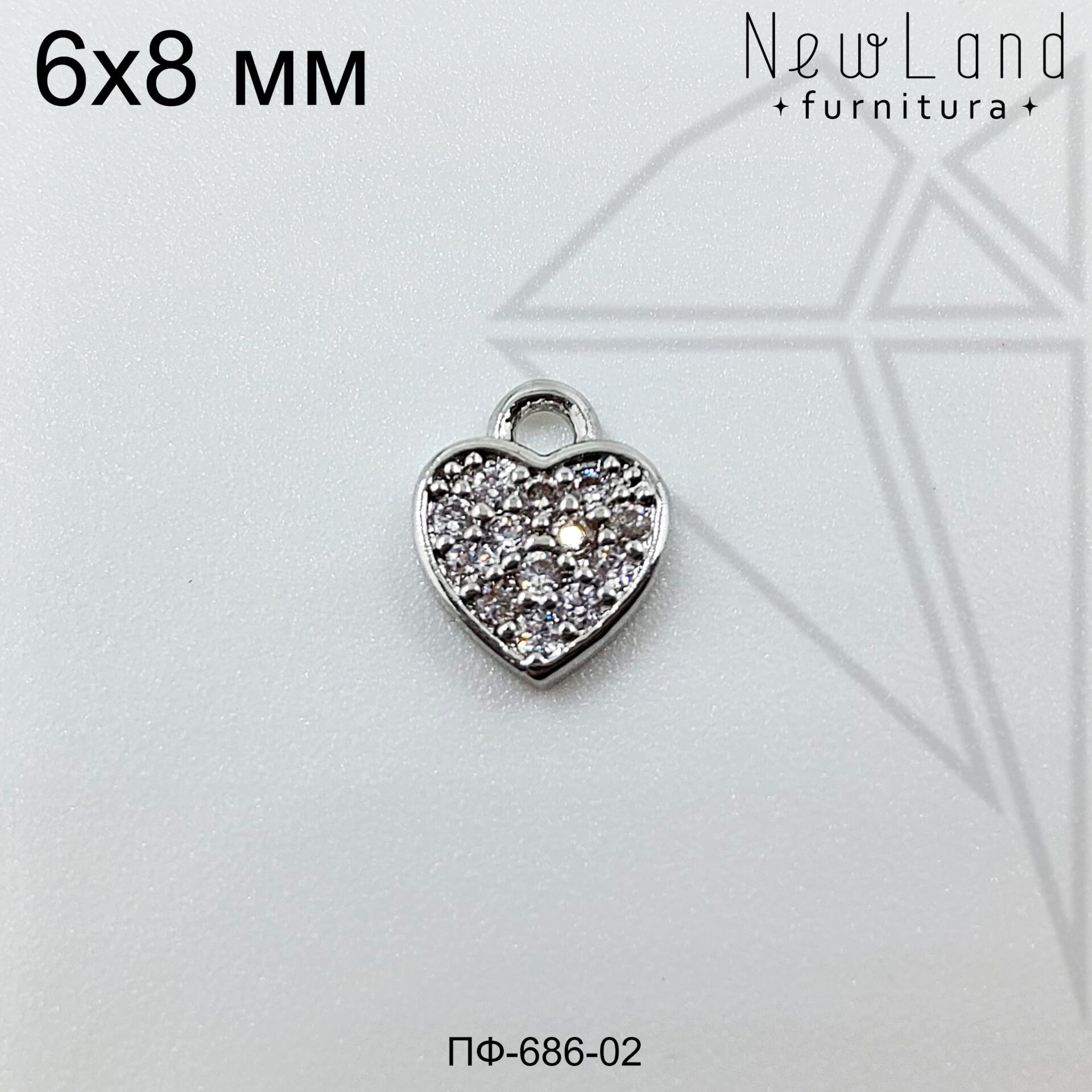 Подвески в форме сердца 8 мм класса люкс с родированным покрытием (по латуни).